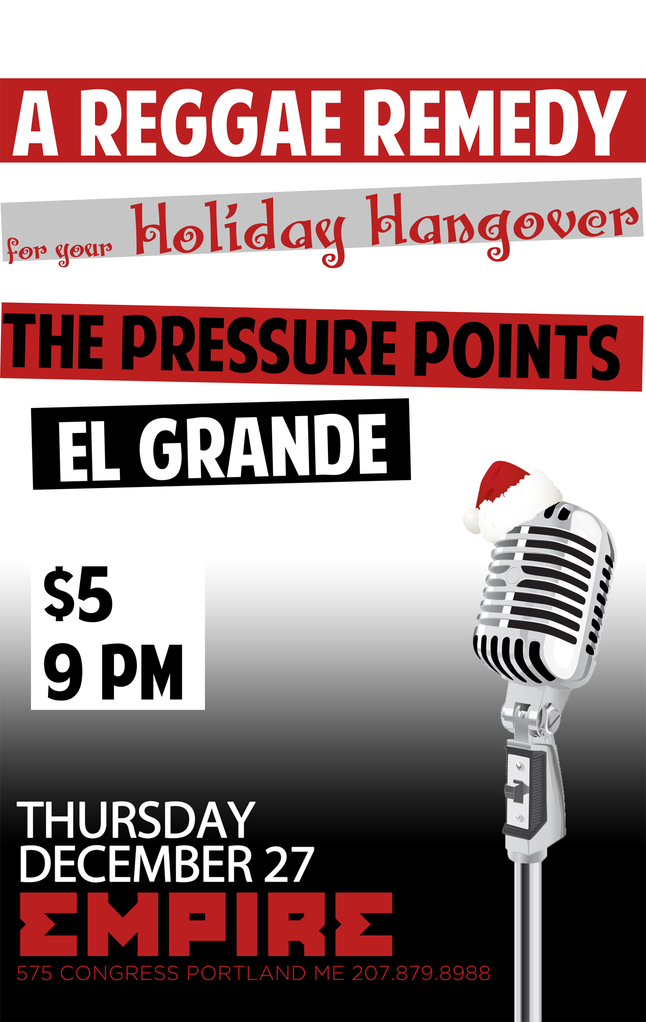 We took another successful trip to Boston this past weekend for our show at the Renaissance Hotel, and have a post-holiday gig to look forward to next week as we join The Pressure Points at Empire Dine & Dance Thursday, Dec. 27 at 9 p.m. We’re calling this one “A Reggae Remedy for your Holiday Hangover.” After all that food, and lets face it, booze, you’re gonna need to dance it all off.
